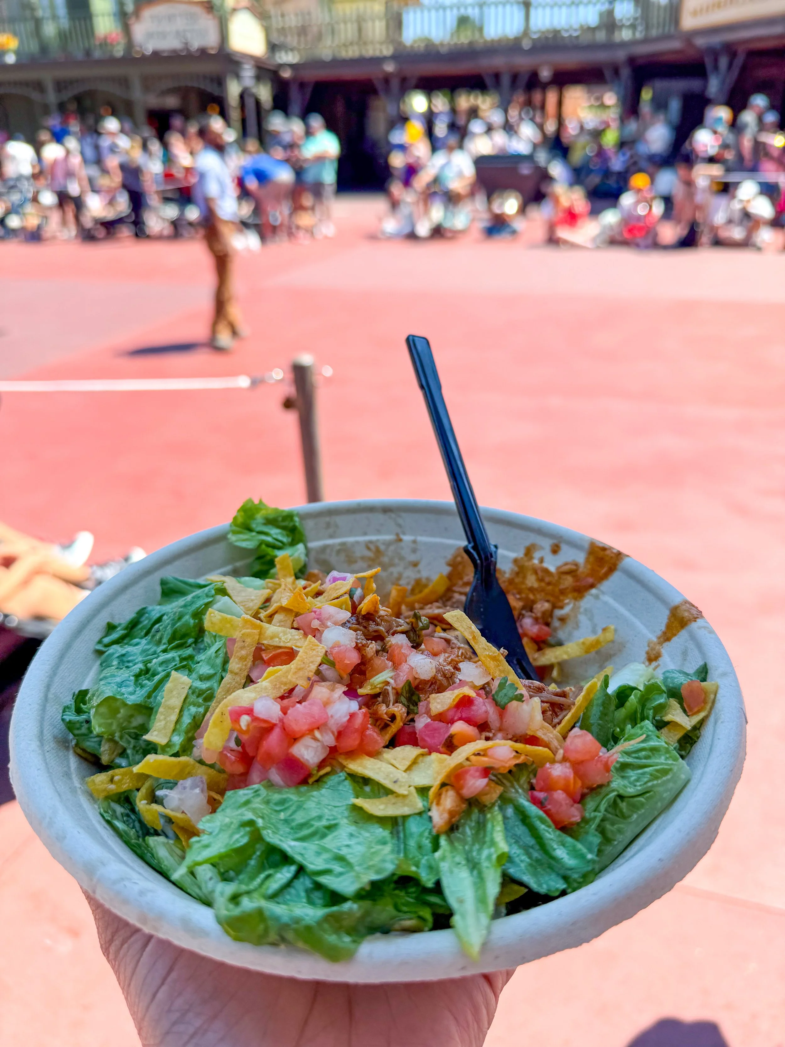 Lunch at Pecos Bill Tall Tale Inn: My Southwest Caesar salad was amazing, and I got to enjoy it during the parade.